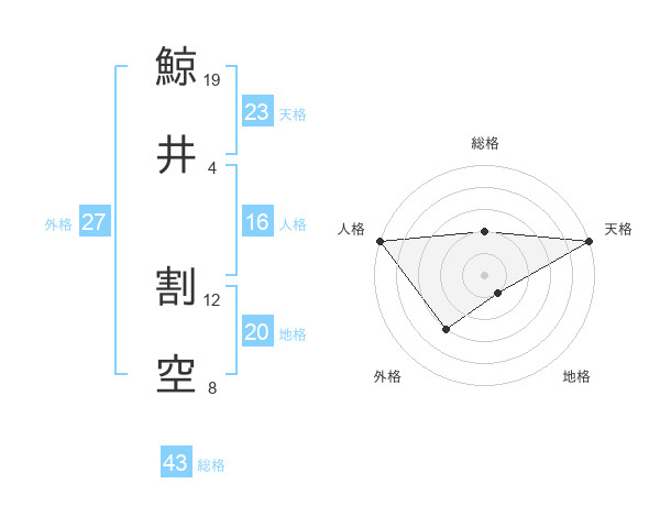 鯨井 割空さんの地格は20画の1点!