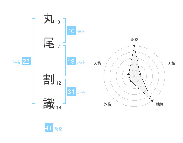 丸尾 割識さんの総格は41画の5点!