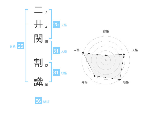 二井関 割識さんの天格は25画の4点!