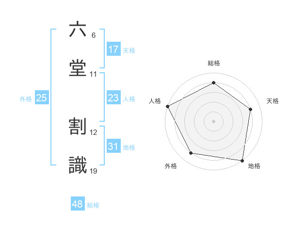 六堂 割識さんの人格は23画の5点!