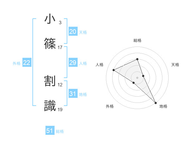 小篠 割識さんの総格は51画の3点!