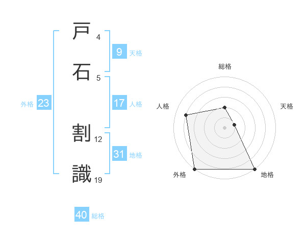 戸石 割識さんの外格は23画の5点!