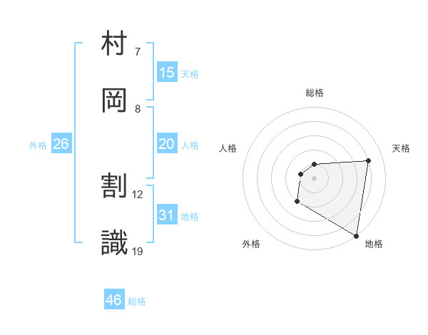 村岡 割識さんの外格は26画の2点!