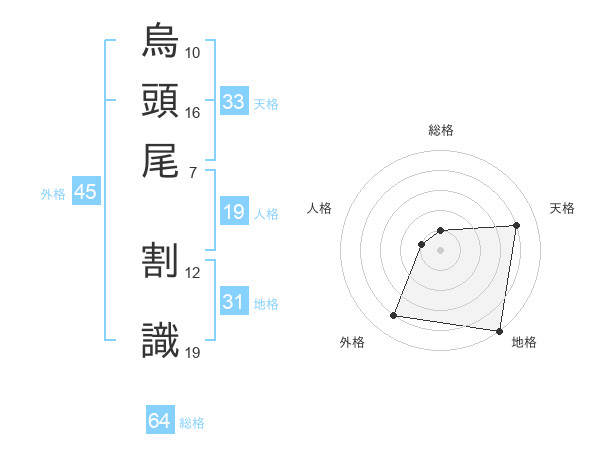烏頭尾 割識さんの外格は45画の4点!