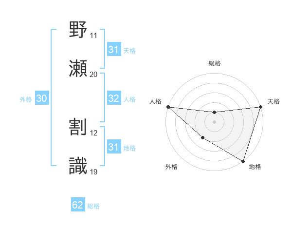 野瀬 割識さんの天格は31画の5点!
