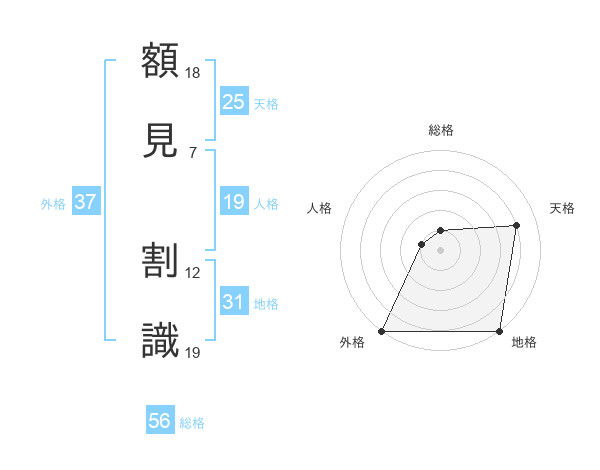 額見 割識さんの外格は37画の5点!