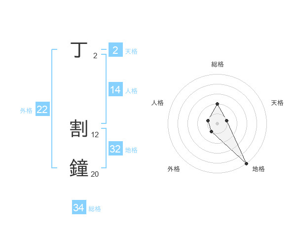 丁 割鐘さんを姓名の画数から五運を鑑定