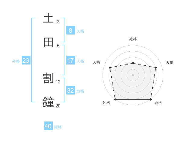 土田 割鐘さんを姓名の画数から五運を鑑定