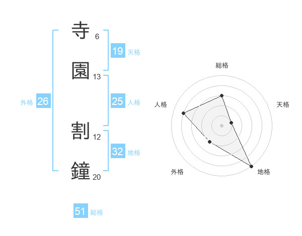 寺園 割鐘さんの総格は51画の3点!
