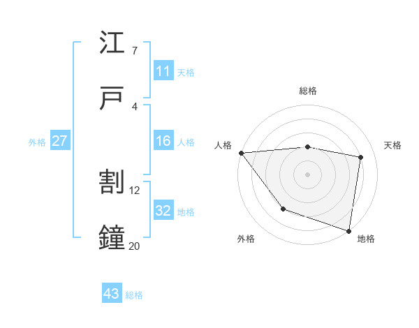 江戸 割鐘さんの総格は43画の2点!