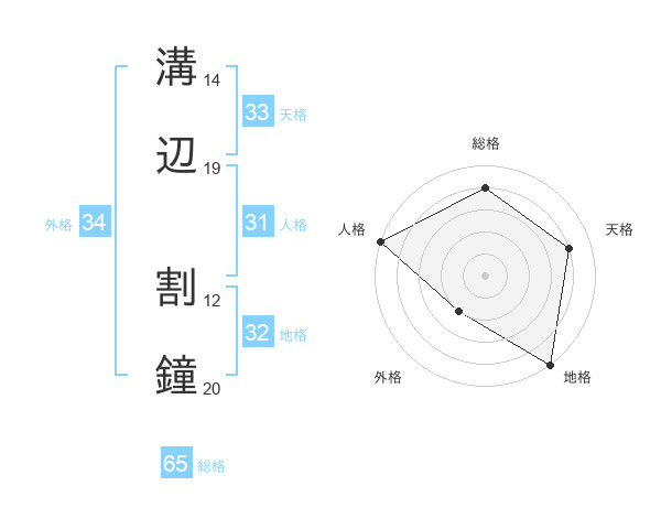 溝辺 割鐘さんの総格は65画の4点!
