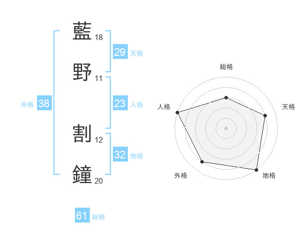 藍野 割鐘さんを姓名の画数から五運を鑑定