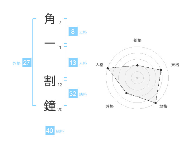 角一 割鐘さんを姓名の画数から五運を鑑定