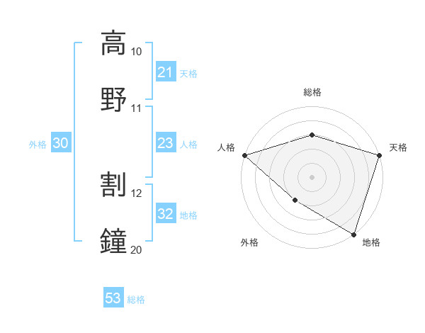 高野 割鐘さんの総格は53画の3点!