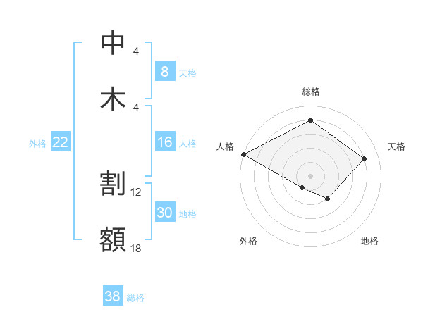 中木 割額さんの総格は38画の4点!