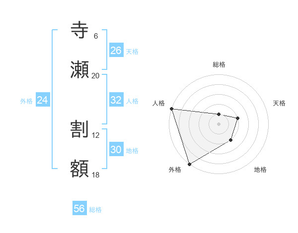 寺瀬 割額さんの総格は56画の1点!