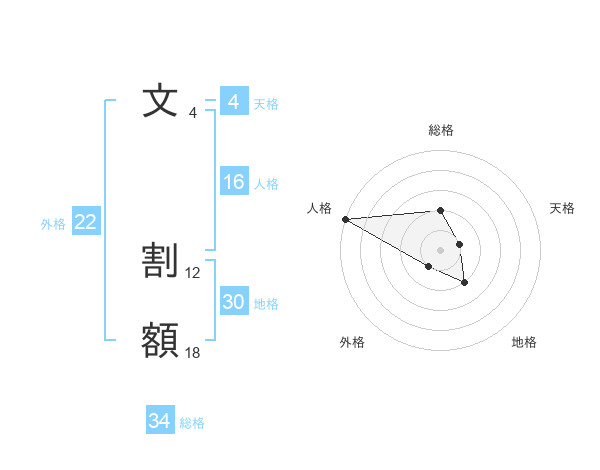 文 割額さんの総格は34画の2点!