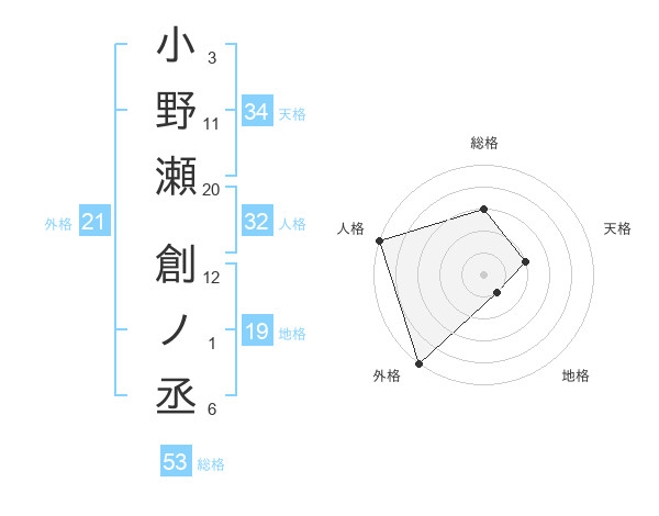 小野瀬 創ノ丞さんを姓名の画数から五運を鑑定