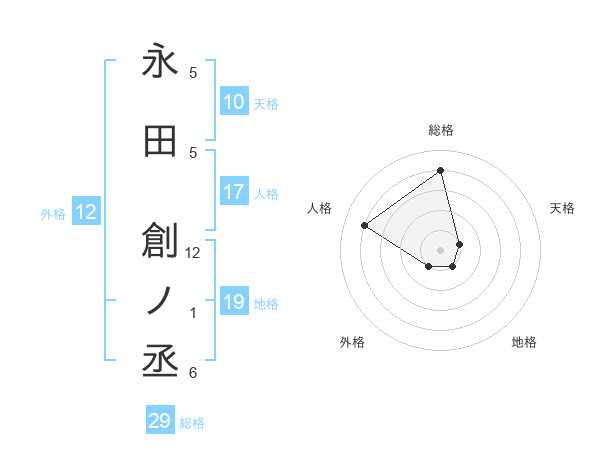 永田 創ノ丞さんを姓名の画数から五運を鑑定