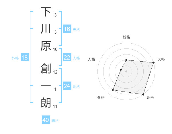 下川原 創一朗さんの地格は24画の5点!