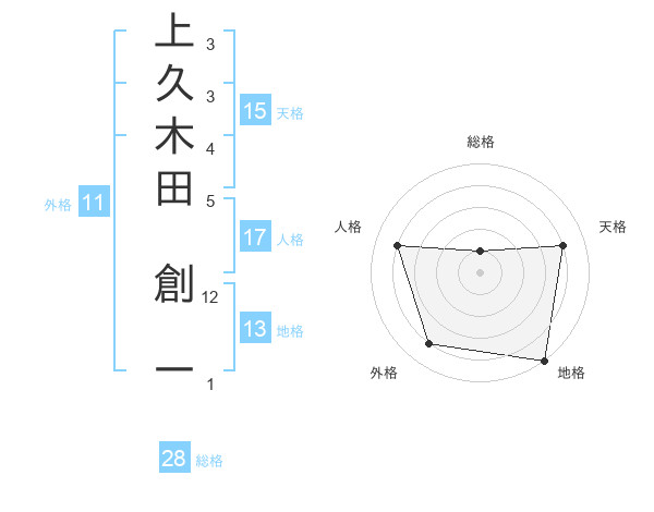 上久木田 創一さんを姓名の画数から五運を鑑定