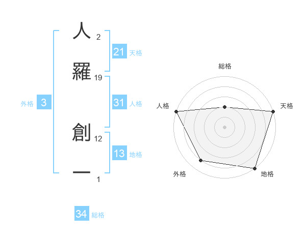 人羅 創一さんの天格は21画の5点!