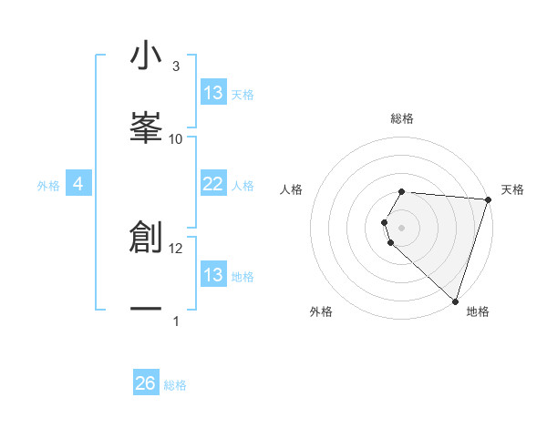 小峯 創一さんの天格は13画の5点!