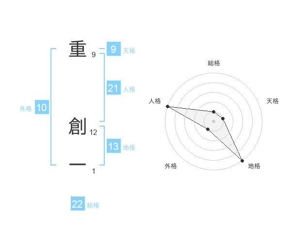 重 創一さんの地格は13画の5点!