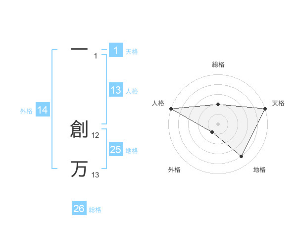 一 創万さんの天格は1画の5点!