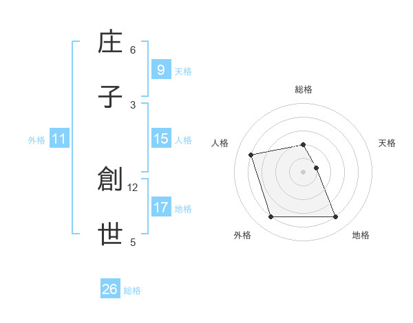 庄子 創世さんを姓名の画数から五運を鑑定
