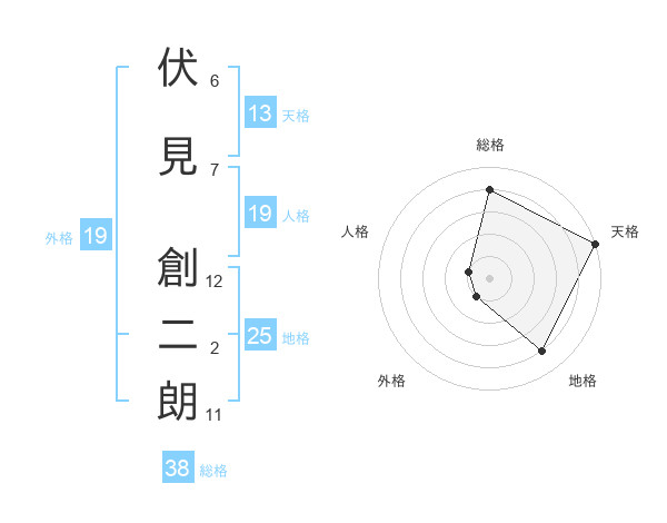 伏見 創二朗さんを姓名の画数から五運を鑑定