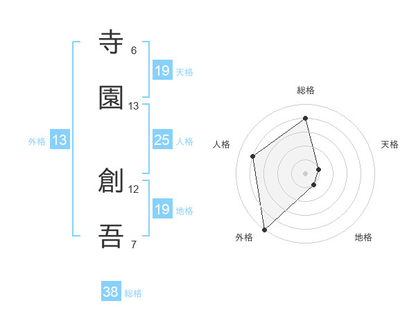 寺園 創吾さんの総格は38画の4点!