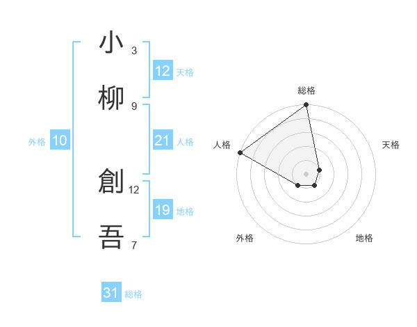 小柳 創吾さんを姓名の画数から五運を鑑定