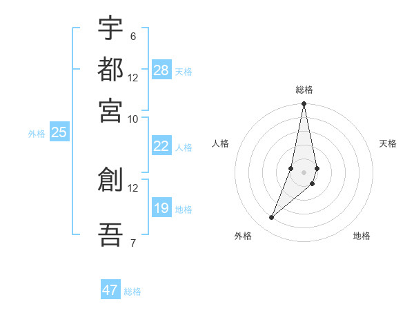 宇都宮 創吾さんを姓名の画数から五運を鑑定