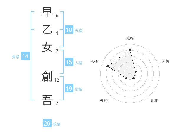 早乙女 創吾さんを姓名の画数から五運を鑑定