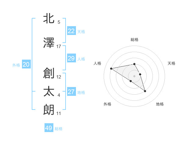 北澤 創太朗さんを姓名の画数から五運を鑑定