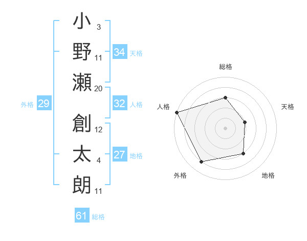 小野瀬 創太朗さんを姓名の画数から五運を鑑定