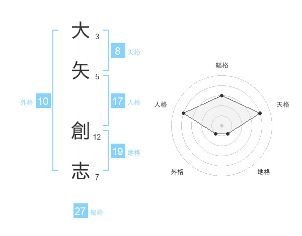 大矢 創志さんの総格は27画の3点