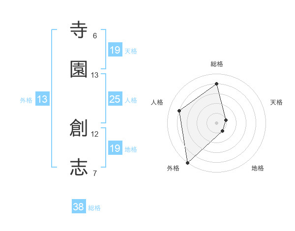 寺園 創志さんの外格は13画の5点!