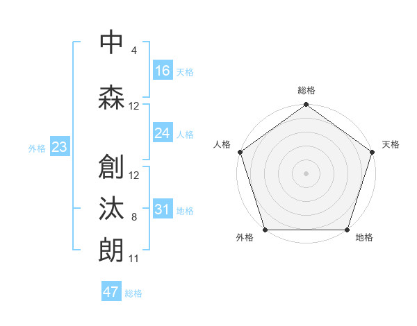 中森 創汰朗さんを姓名の画数から五運を鑑定