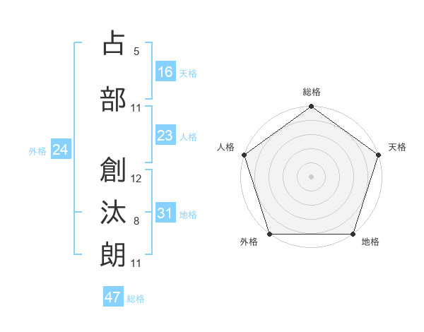 占部 創汰朗さんを姓名の画数から五運を鑑定