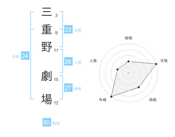 三重野 劇場さんを姓名の画数から五運を鑑定