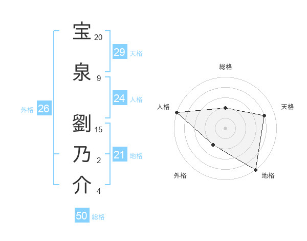 宝泉 劉乃介さんの天格は29画の4点!