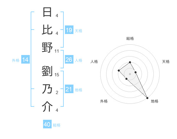 日比野 劉乃介さんを姓名の画数から五運を鑑定
