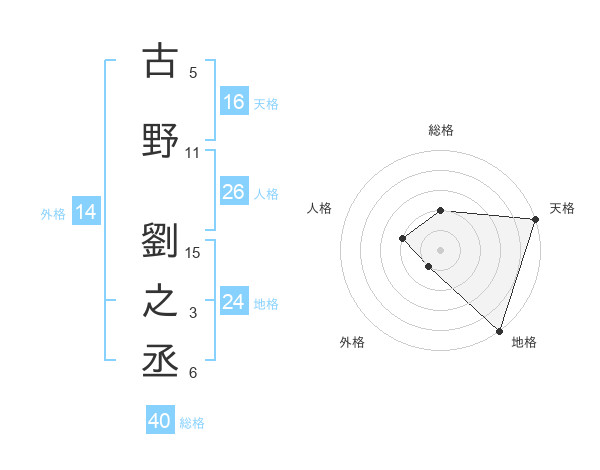 古野 劉之丞さんを姓名の画数から五運を鑑定