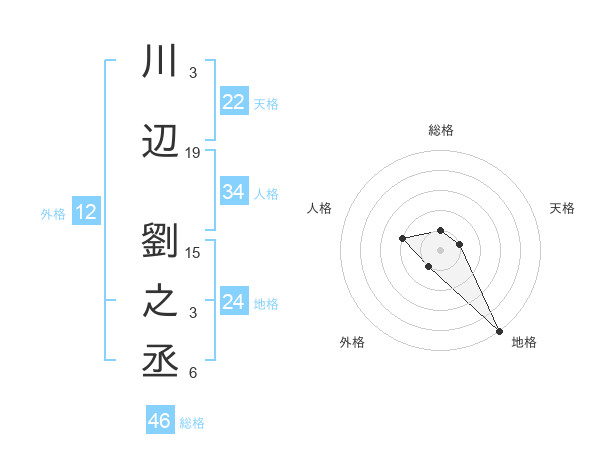 川辺 劉之丞さんを姓名の画数から五運を鑑定