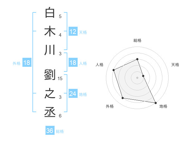 白木川 劉之丞さんの地格は24画の5点!