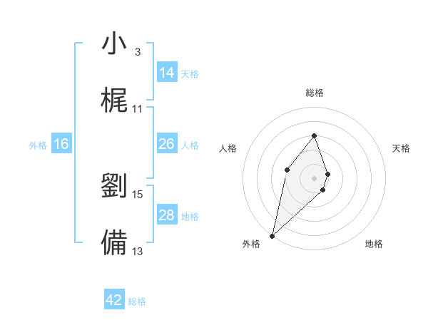小梶 劉備さんを姓名の画数から五運を鑑定