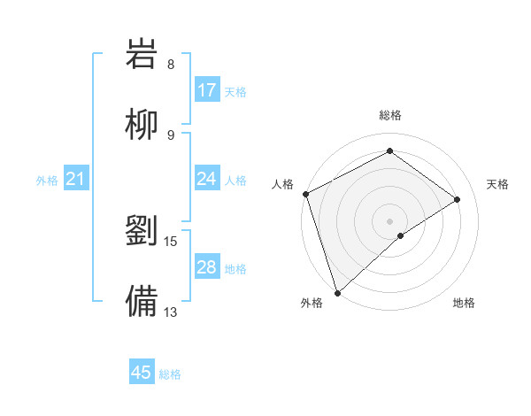 岩柳 劉備さんを姓名の画数から五運を鑑定