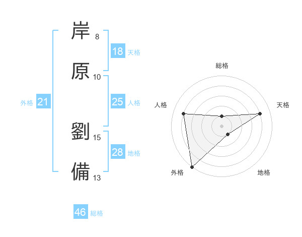 岸原 劉備さんの総格は46画の1点!